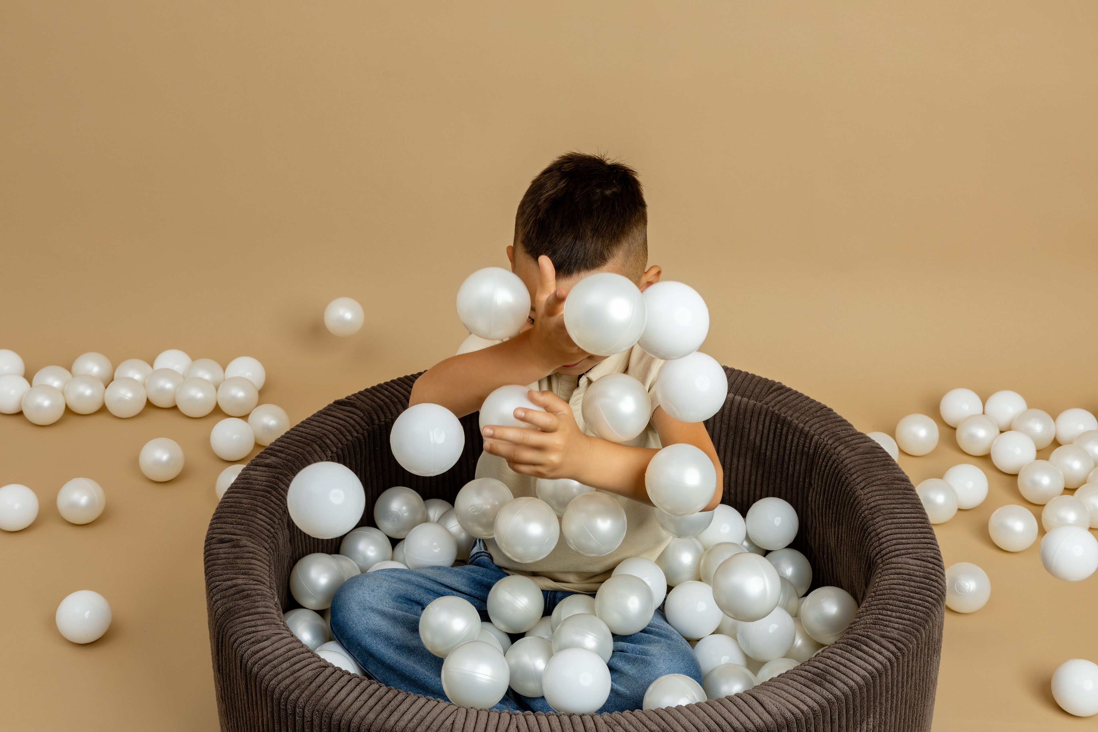 Round Ball Pit with 200 Pearl balls, 90x30cm - Velvet Ecru